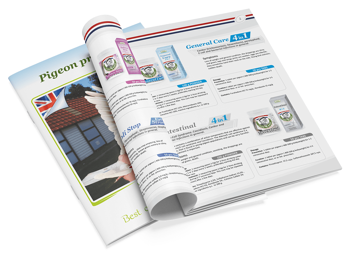 علاجي: قرص واحد لكل حمامة (وزن الجسم 400-500 جم) لمدة 3-5 أيام متتالية، أو حسب وصف الطبيب البيطري.